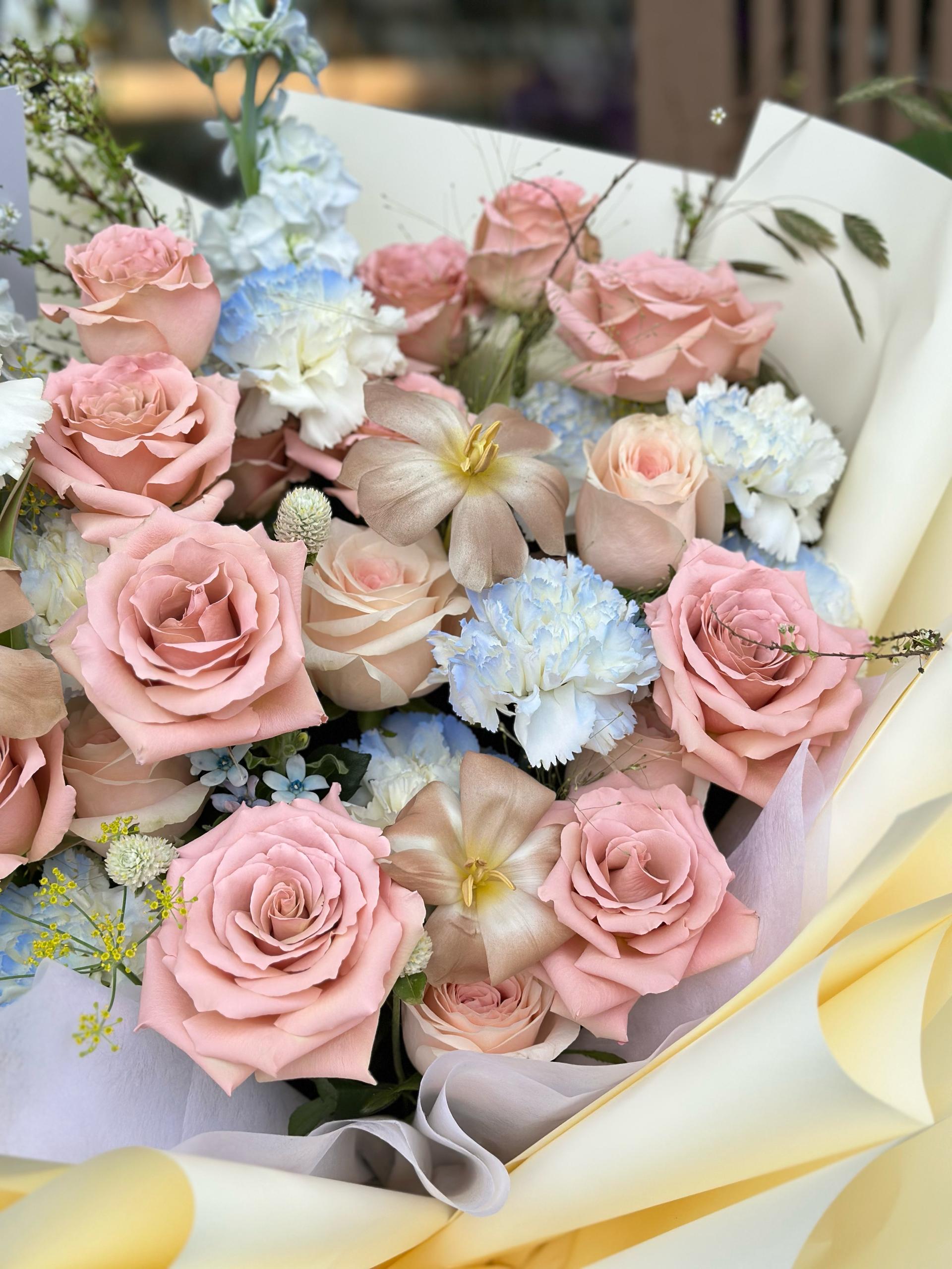 Due to seasonal availability or supply conditions, some flowers may occasionally be out of stock.To ensure that your bouquet maintains its original design and quality, we will substitute with similar flowers of equal value, striving to achieve the most beautiful outcome.